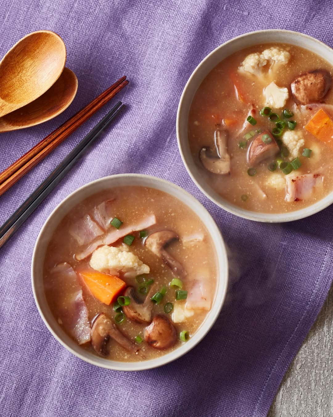 Turn off heat and add blended miso. Chop green onion and sprinkle on top.